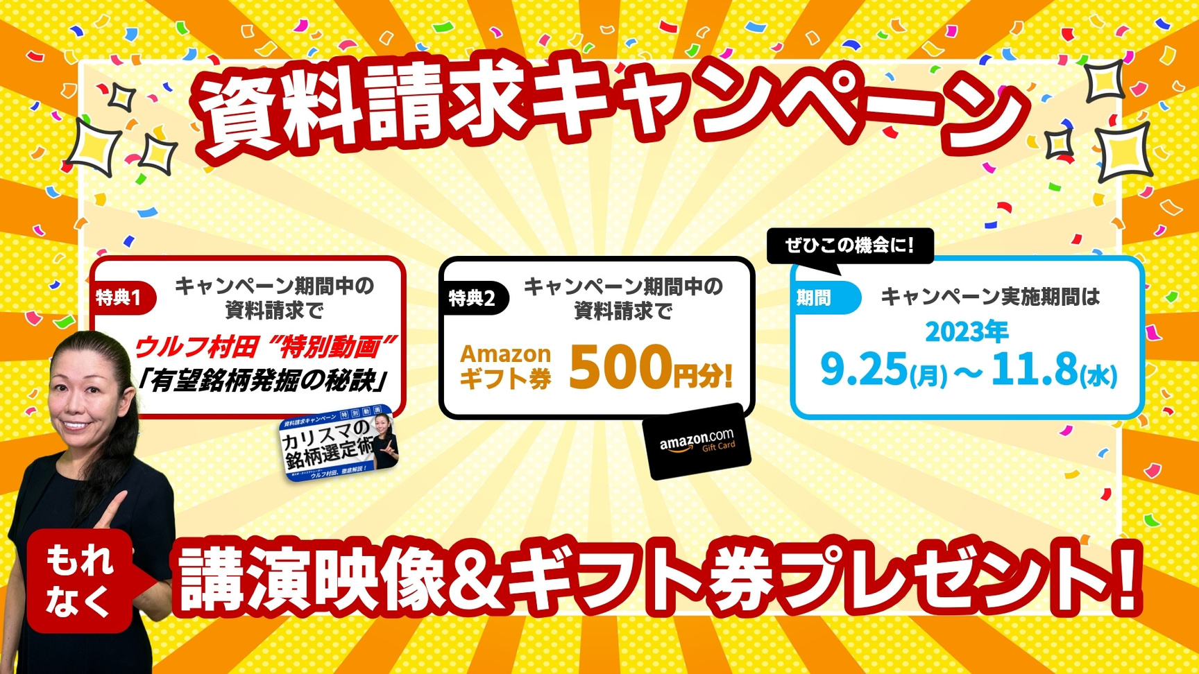 ご当選された方には、Amazonギフト券と講演動画QRコードをご一緒にお送りさせて頂きます。